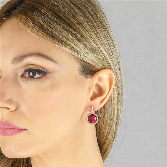 Orecchini Da Donna Di Boccadamo Della Collezione Sharada Della Linea Mediterranea. Orecchini In Bronzo Placcato Oro Rosa Con Cristallo Color Rosso Tormalina Pendente Decorato Da Zirconi. Materiale: Bronzo. Produzione: Realizzato In Italia. Misure: Lunghezza Cm 2. Dimensione: Diametro Cristallo Cm 1,5. Chiusura: A Farfalla.