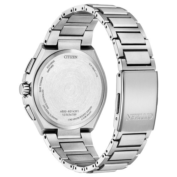 Orologio cronografo da uomo modello H804 Sport Super Titanio. Cassa in Super Titanio spazzolata e lucida, Lunetta nera con nomi città in Super Titanio Duratec DLC. Movimento Eco-Drive a carica luce infinita con riserva di carica di 10 mesi. Radiocontrollato a 5 canali: ricezione segnale orario USA, Europa, Giappone, Cina. World time con orario di 26 citta' del mondo. Cronografo 1/20 di secondo (fino a 60 min.). Calendario perpetuo. Antimagnetico. Funzione di protezione da shock. Quadrante nero con indicatore riserva di carica, giorno data e 24 ore, indici e lancette lucidi e luminescenti. Vetro zaffiro. Bracciale regolabile in Super Titanio, chiusura deployante con pulsanti. Resistente all'acqua 10 atmosfere. Scatola libretto istruzioni e garanzia 2 anni originali.