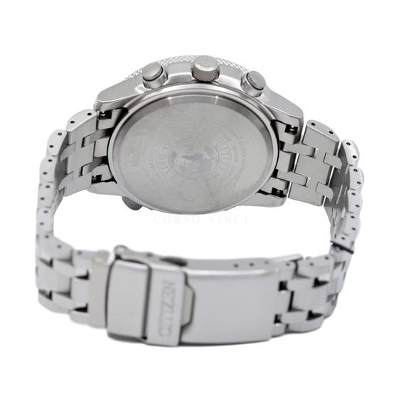 Orologio uomo Cronografo Multifunzioni Citizen CRONO PILOT SUPER TITANIO. Movimento Eco-Drive a carica luce con riserva di carica di 10 mesi(fino a 3 anni in modalità risparmio energetico) con funzione di radiocontrollo multibanda a 5 canali con ricezione dei segnale orario Europa, USA, Giappone e Cina. World Time con orario di 24 città del mondo e ora UTC - allarme (sveglia) - calendario perpetuo - cronometro 1/20 di secondo per un massimo di 60 minuti - indicazione livello riserva di carica. Cassa in Super Titanio ghiera girevole bi-direzionale con sistema regolo calcolatore (tramite corona a ore 8). Vetro zaffiro antigraffio. Quadrante blu indici e lancette luminescenti. Bracciale regolabile in Super Titanio chiusura di sicurezza con pulsanti. Impermeabile 20 bar (atm) Libretto Istruzioni e Scatola Originale. Garanzia 2 anni.