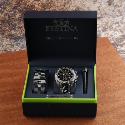 Questo orologio Festina ha una cassa in Inox con un diametro di 14.5 mm ed è dotato di un cinturino in Metallo. All'interno della cassa si trova un movimento di Miyota e l'orologio è dotato di un cristallo di Zaffiro 2 ANNI DI GARANZIA CON DOPPIO CINTURINO