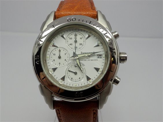 Cronografo al quarzo, cassa in acciaio, corona chiusa a pressione. Cinturino in pelle con chiusura ad ardiglione con logo.