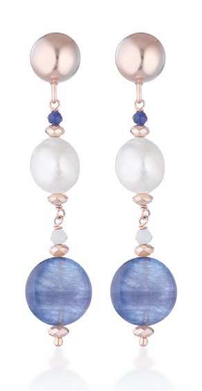Orecchini con perle coltivate naturali, cianite ed argento rosa 925‰