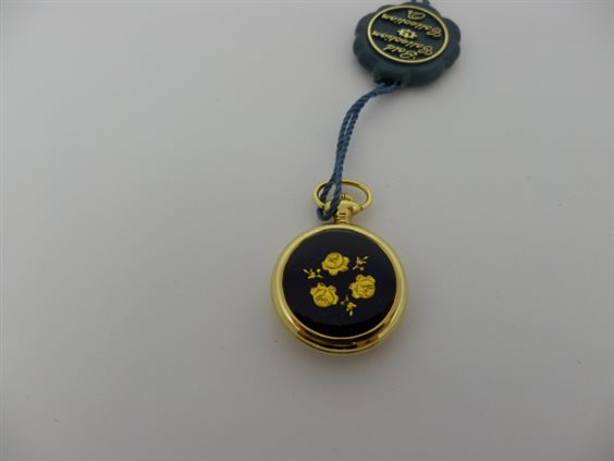 Monachina in oro giallo al quarzo, retro smalto blu con rose in oro giallo.