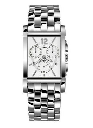 Cronografo movimento svizzero ETA, cassa rettangolare, vetro zaffiro, fondello fissato con 4 viti, cinturino con chiusura deplojant