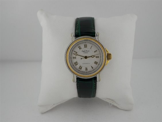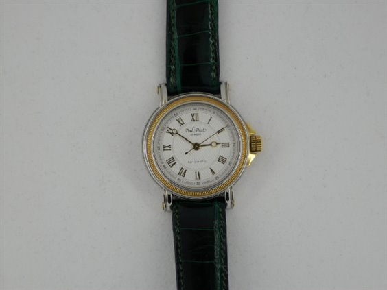 Orologio con cassa in acciaio e lunetta in oro 18 kt con movimento automatico. Vetro zaffiro, quadrante argentè guillochè con numeri romani applicati. Lancette tipo "Breguet", corona con logo PP protetta da due spallette fissate alla cassa con 2 viti, fondello godrontato serrato a pressione, Cinturino in coccodrilo verde con chiusura ad ardiglione.