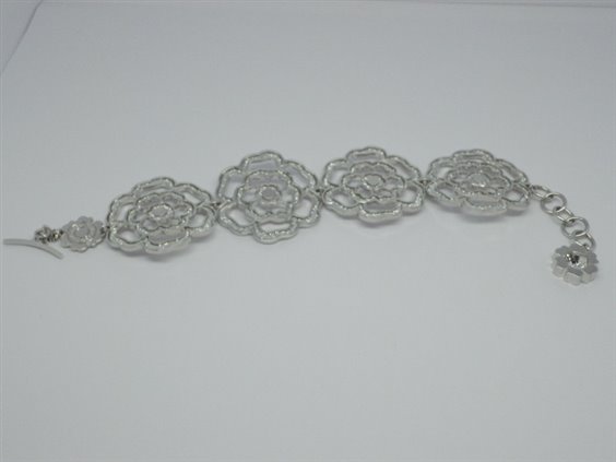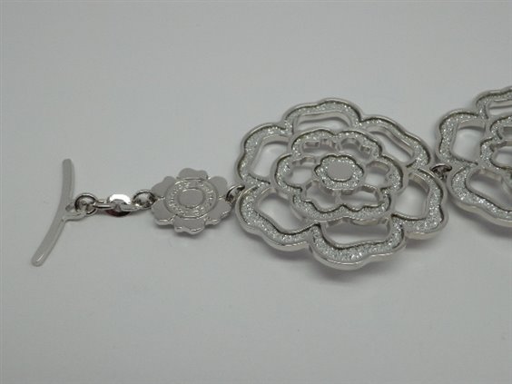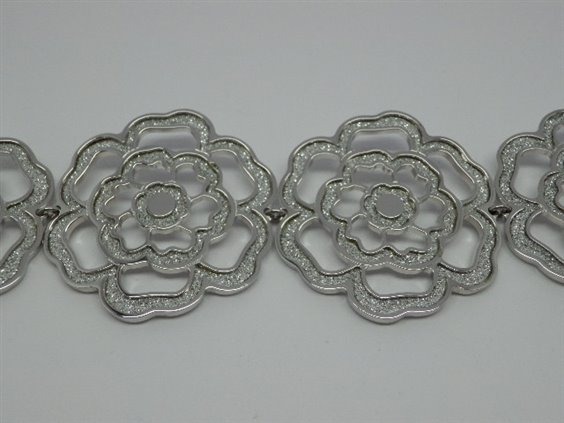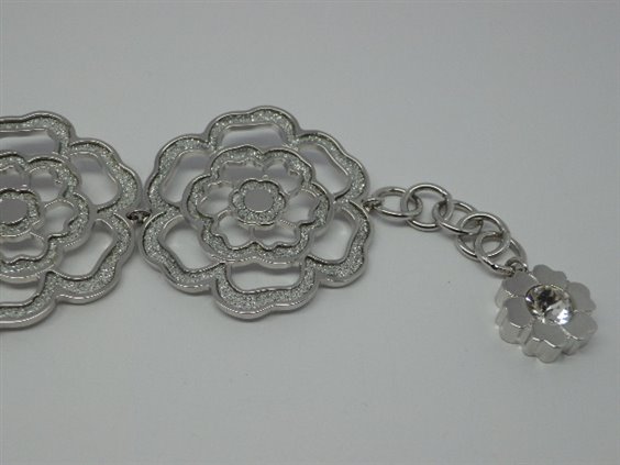 Bracciale in bronzo placcato oro bianco con glam film, lunghezza cm 20 regolabile.