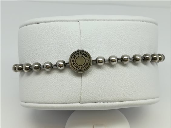 Bracciale in argento brunito con timone e chiusura a "bottone" calamitato. Diam. palline 4 mm