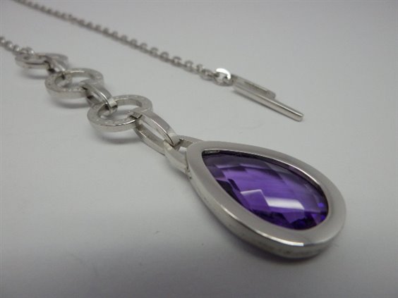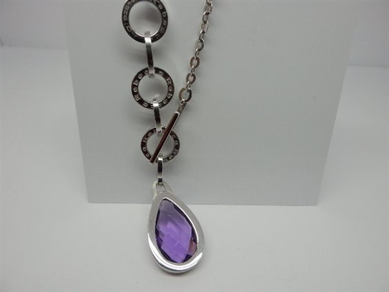 Collana in argento con pendete a forma di goccia con quarzo idrotermale viola.