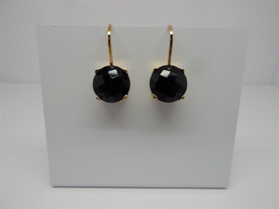 Orecchini in bronzo placcati oro rosa con quarzo idrotermale nero, chiusura ad amo lunghezza cm 2.5