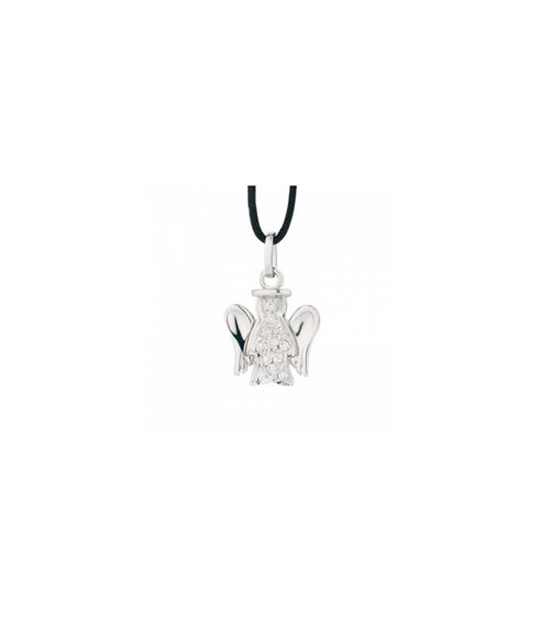 Pendente angelo in oro bianco 18kt con diamanti taglio brillante, base 1,2cm-altezza 1,5cm