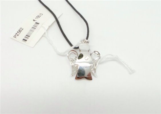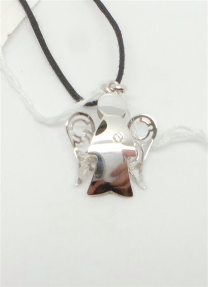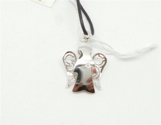 pendente angelo in oro bianco con brillantino comprensivo di laccetto in filo cerato nero - diamanti ct 0,01- angelo: base 1,9 cm - altezza 2,5 cm . tutto con certificato di originalita'