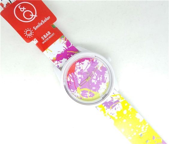 SMILESOLAR Caratteristiche tecniche Orologio per unisex, per uomo e donna, con cassa monoblocco in resina ABS antigraffio, impermeabile fino a 5 bar, cinturino in PET o gomma PU, vetro plexi, movimento eco-drive con riserva di carica di 100 giorni, 28 modelli disponibili, peso 27 grammi circa, diametro della cassa 40 millimetri.