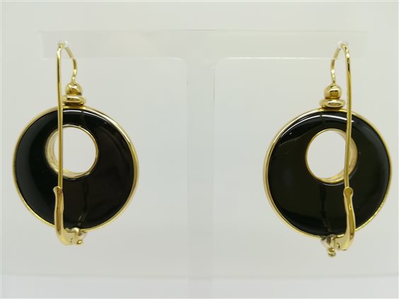 Orecchini in oro giallo ed onice con chiusura a monachella.