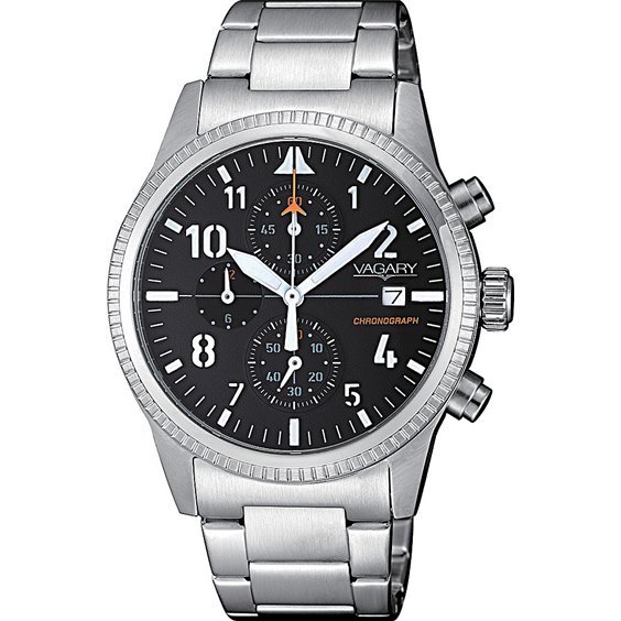 Orologio Cronografo Da Uomo Di Vagary Della Collezione Flyboy. Modello Con Cassa In Acciaio Del Diametro Di 38 Mm, Quadrante Con Indici Numerici E Cinturino In Acciaio E Chiusura Con Pulsante. Orologio Dotato Di Movimento Al Quarzo E Resistenza All'Acqua Di 5 Atm. La Referenza È Ia9-811-51