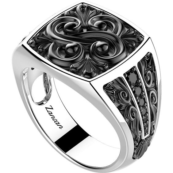 Anello in argento 925 millesimi, con zirconi neri, misura 26