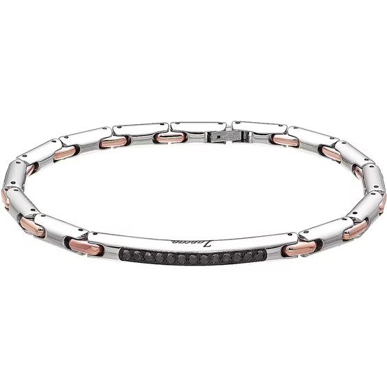 Bracciale in acciaio 316L ipoallergenico lucido e laminato oro rosa con spinelli neri. Uno stile esclusivo in cui identificarsi, un carattere particolare in cui riconoscersi. Design curato in ogni dettaglio, per trasmettere la propria personalità. Per affermare la propria identità.